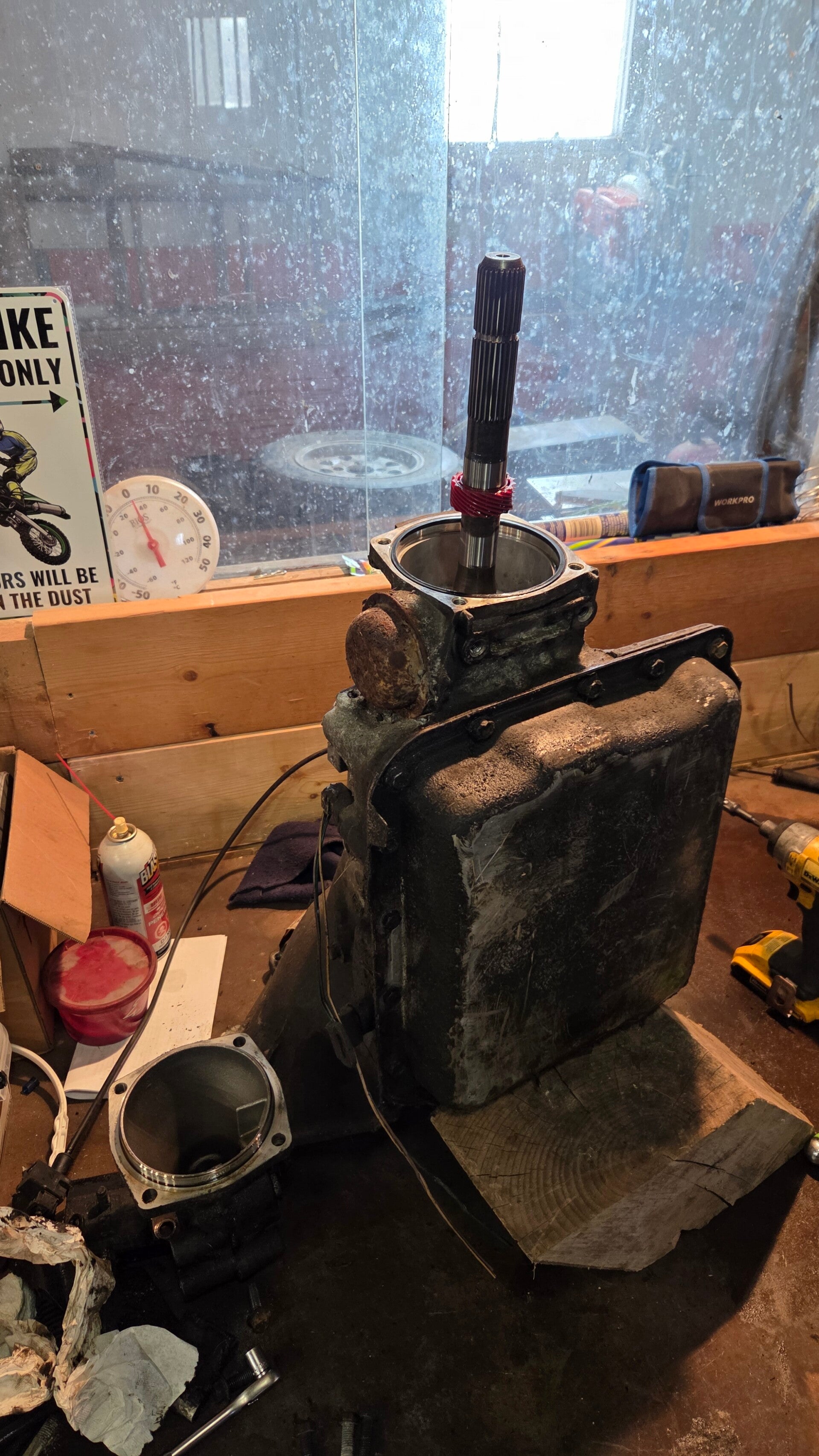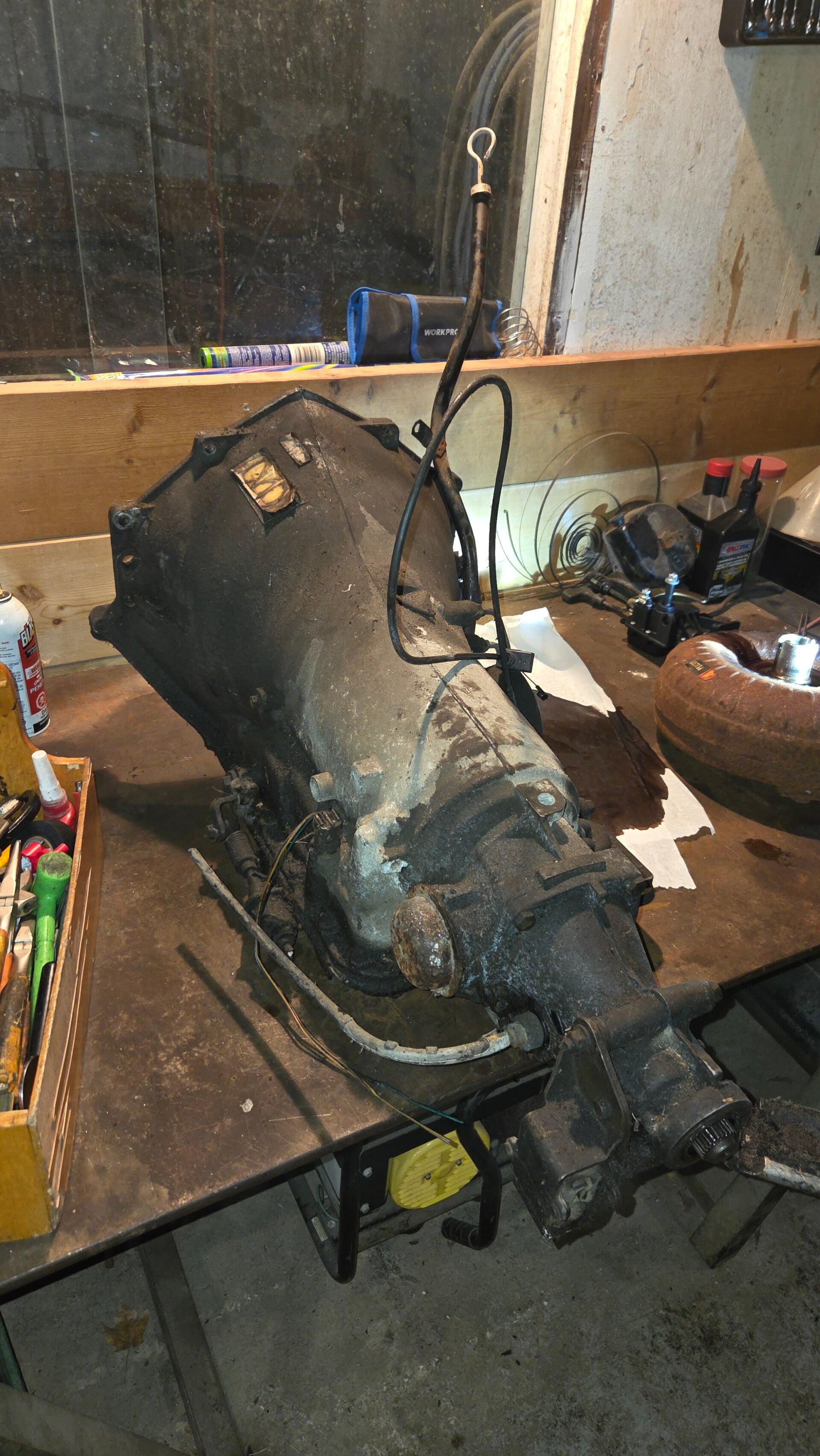 So as you can see on the bench, we have our new to us updated 700R4. Apparently the '87 and up 700R4's had better internals.